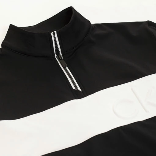 - Contrast colour zip at mock neck with ck branded zip pull